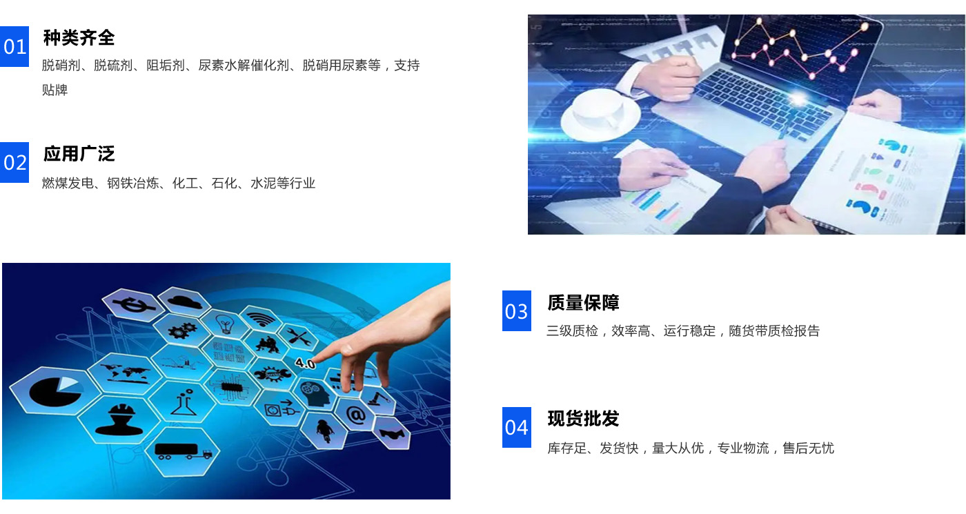 公司主营脱硝剂、脱硫剂、缓蚀阻垢剂、尿素水解催化剂、脱硝专用尿素等化学品;服务涉及电力、化工、钢铁、化肥、制药、冶炼等行业;年产能10000吨,客户遍及全国。